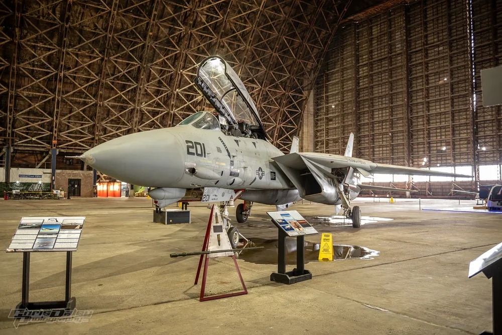The Museum’s F-14A Tomcat was received by the U.S. Navy August 16, 1976 and served in several naval squadrons, where it logged 6,844 landings, 937 ship arrests, and 925 catapult launches. It came to the museum from NAS Oceana on December 17, 1997 on loan from the National Naval Aviation Museum of Pensacola, Florida. One of only three remaining F-14 Tomcats (out of a total of twelve) to be utilized in the blockbuster 1986 film “Top Gun,” the Museum’s F-14 was featured three times in the film (TWICE in the final climactic dog fight scene at the end of the movie where the F-14 fires an AIM-9 Sidewinder missile). At the time of filming, the F-14 was a part of Squadron VF-213 (the Black Lions) that was stationed aboard the aircraft carrier U.S.S. Enterprise when Paramount Pictures gave it its shot at stardom. Sadly, most Tomcats to be used for the film were later scrapped, with only a handful to testify to their history in one of the most iconic aviation films of all time.